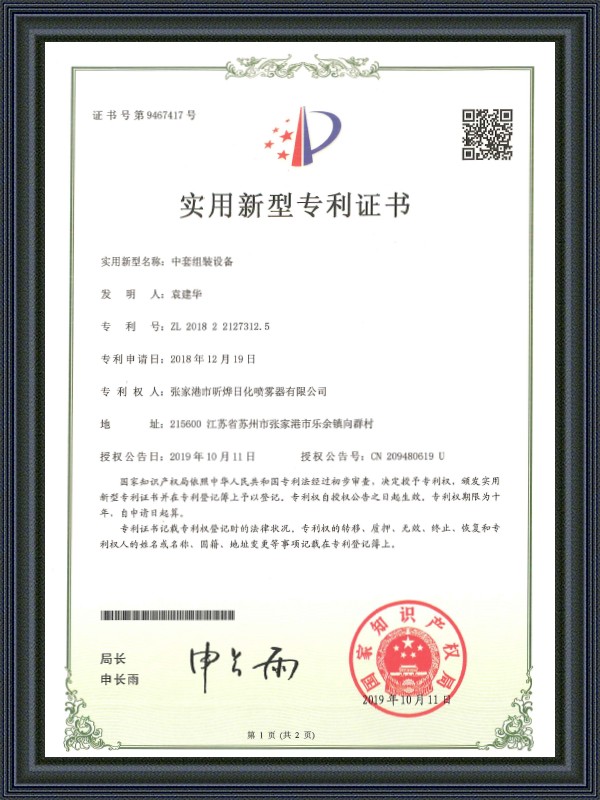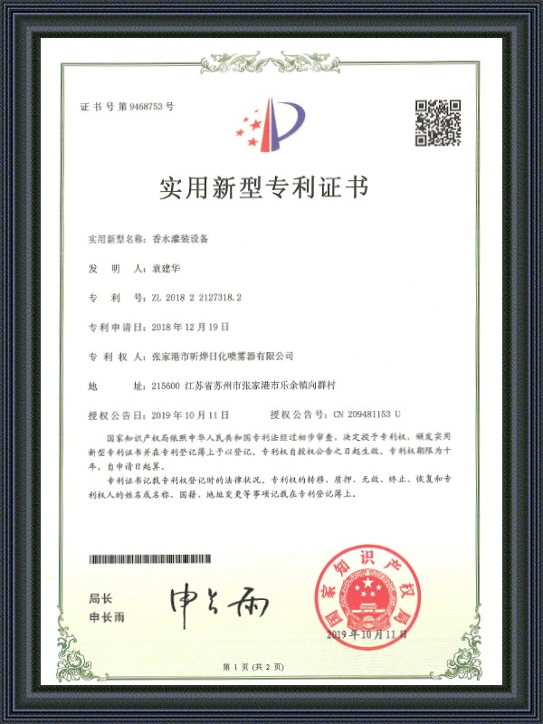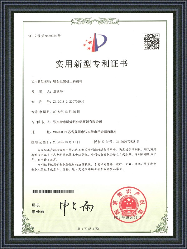 Certificat de brevet de modèle d'utilité